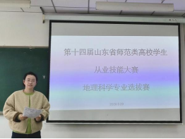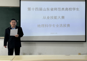 为全面检验地理科学专业师范生教学综合素养,夯实师范生素养与职业技能根基,3 月 29 日上午,我院在青岛大学浮山校区浩园1教307 教室,举办第十四届山东省师范生从业技能大赛地理科学专业校内选拔赛。